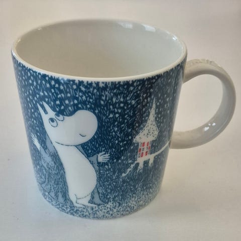 2018-2019 tuotannossa ollut muki. Kulumaa pohjassa. Korvan vieressä pientä naarmua, näkyy heikosti mutta tuntuu koskettaessa.