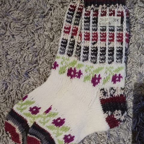 Ruusuiset kirjoneule sukat seitsemän veljestä ja My home living langasta koko 37-38