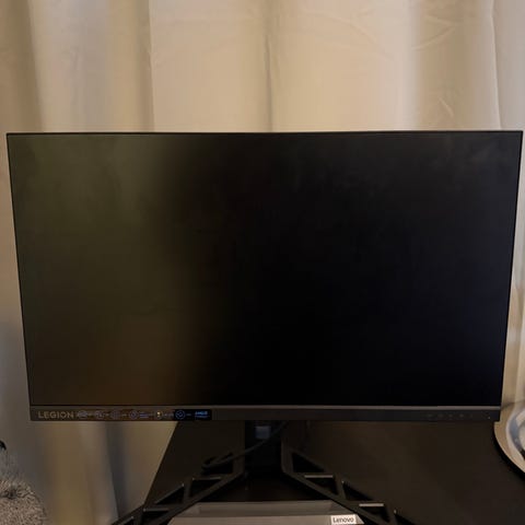 Myynnissä 2kpl Lenovo Legion Y25f-10 24,5" 144 Hz pelinäyttöä ja Mozi Dual Display Desk Stand -pöytäjalka kahdelle näytölle.