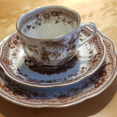 Vintage-tyylisiä kahvikuppeja ja kuppilautasia yhteensä 12kpl ja lisäksi saa mukaan Arabia Maisema-sarjasta pienen lautasen (kuva 7), joka sopii erinomaisesti yhteen Singapore-sarjan kanssa.