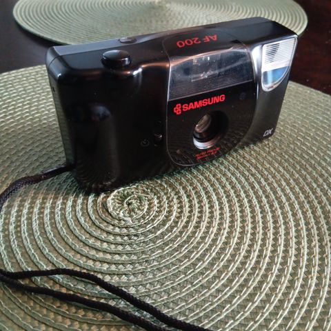 Siisti samsungin filmipokkari ja siihen suojapussi. Ulkoisesti kamera siisti. Testifilmirullan pyöräytin läpi ja kamera vaikuttaa toimivan perustoimintojen puolesta, mutta kuvaus käytössä en ole testannut, eli myydään tässä kunnossa.