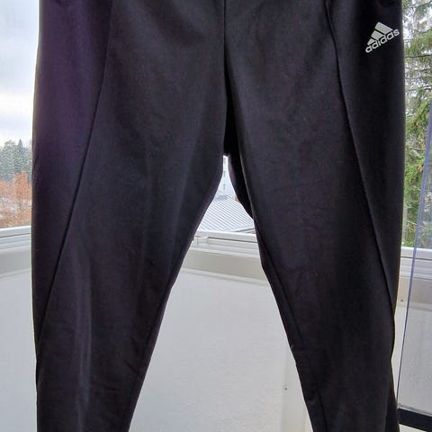 Mustat Adidas verryttelyhousut . Erittäin hyväkuntoiset vähän pidetty jäänyt pieneksi. Lahkeensuissa ketjuhalkiot, ketjulliset sivutaskut, vyötäröllä joustava kuminauha ja kiristysnauhat. Vyötärö 1/2 40 cm+ jousto, sivupituus vyötärönauhan alapuolelta lahkeensuuhun 90 cm , lahkeensuun leveys 1/2 12 cm.