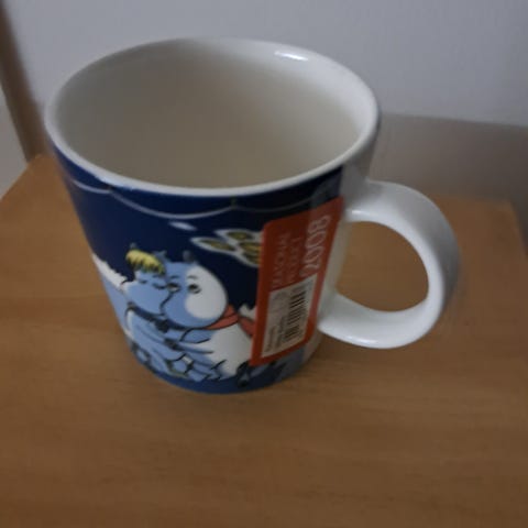 Muki on käyttämätön, mutta tarra poistettu.