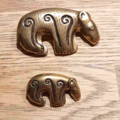 Kaksi ratsastajaa -rintakoru taiteilija Germund Paaerilta 1930-luvulla.