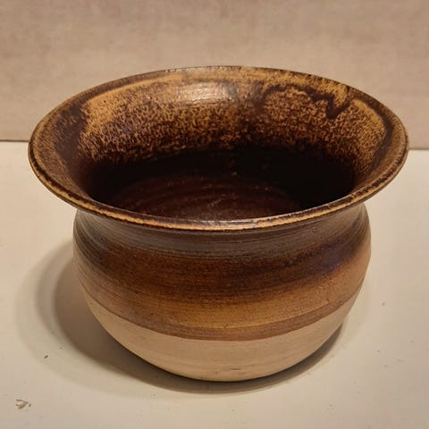 Bjarmian keraaminen kori, puinen sanka, koko 14 x 20 cm. ei vikoja.