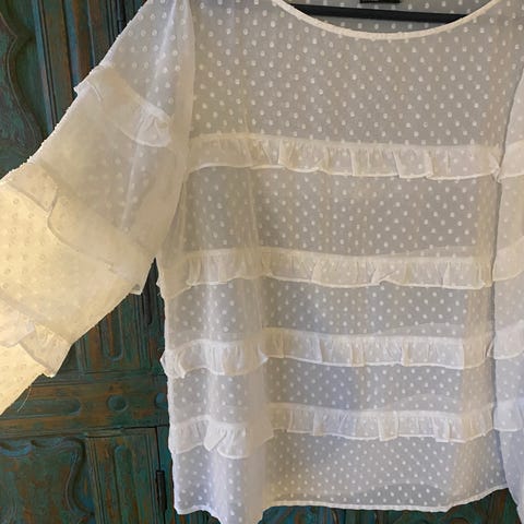 Your Face paita, koko L. Pituus edessä 63 cm (olkapäästä). Materiaali trikoota, mutta edessä on trikoon päällä ohut polyesterikangas, joka antaa ryhtiä. Polyesteria on myös takana hartioiden alapuolella. Todella mukava päällä.