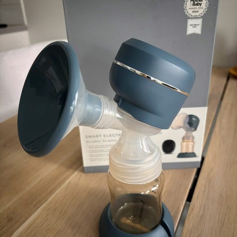 Sähköinen, ladattava ja langaton rintapumppu. Ostettu v. 2021 (kuitista kuva) ja ollut vain vähäisellä käytöllä.