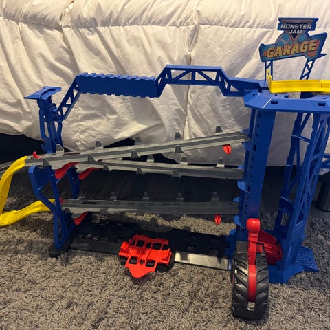Uudenveroinen ja ehjä Monster Jam Garage ”autotalli” monsteriautoille. Kuvassa olevat autot vain rekvisiittana, eivät kuulu kauppaan. Useampi hyppyri, hissi ja telineessä paikkoja noin 20:lle monsteriautolle. Uutena 70-90€. Vain haku.