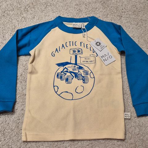 Mainion suloinen vetskarihuppari koiraprintillä ja ”Galactic fields”-tekstein. Luonnonvalkoinen/beige pohjaväri. Edessä on tummaa melko huomaamatonta tahraa ja toisen hihan takapuolella on tussitahraa. En aluksi meinannut edes huomata näitä, joten yleisilme kuitenkin suht siisti.