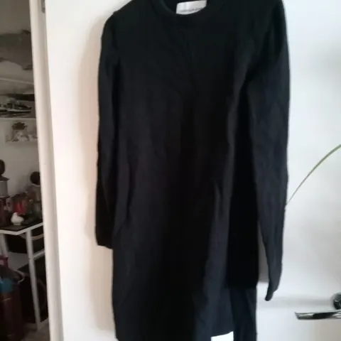 Musta neulemekko (puuvillaa). Miellyttävän pehmeä kangas, jonka väri hieman haalistunut pesussa. 3/4 -pituiset hihat.
