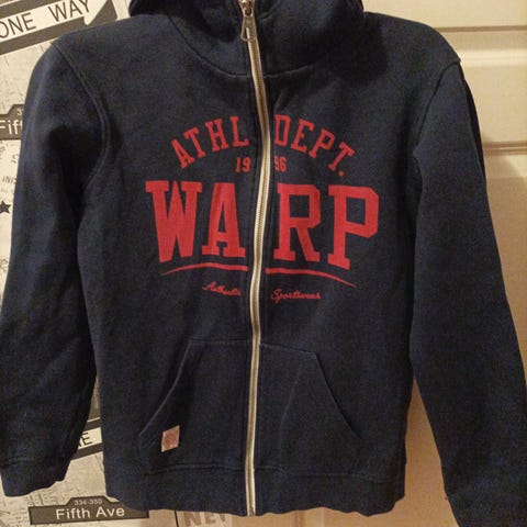 Musta Warp (Stadium) huppari. Koko 158/164. Kengurutasku. Jäänyt käyttämättä kaappiin.
