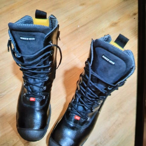 Käyttämättömät Jalaksen turvanilkkurit, suojausluokka S3. Soveltuvat kuumatyöhön, kuten esim. hitsaukseen. Kokonahkaa, kevlar ompeleet, turvakärki, naulaanastumissuoja, lämmön- ja öljynkestävä pohja, tarrakiinnitys. Irroitettavat ja pestävät pohjalliset.