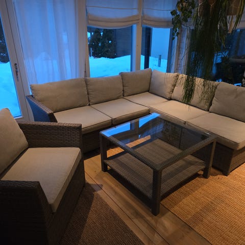 Etsin parvekkeelle polyrottinki kulmasohvaa.