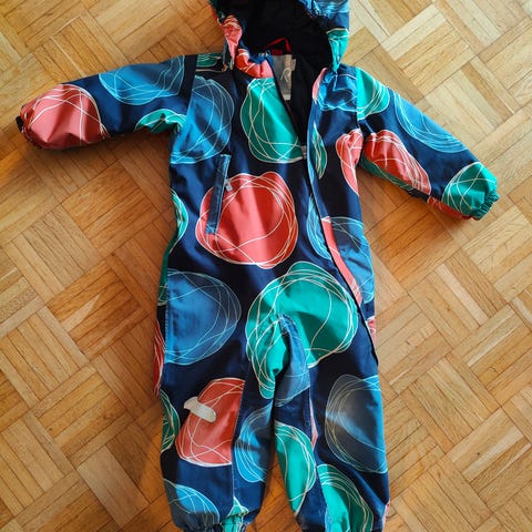 Jonathanin toppahaalari koko 98. Kulumaa löytyy eli ei paras märkiin keleihin, mutta vielä lämmin haalari.