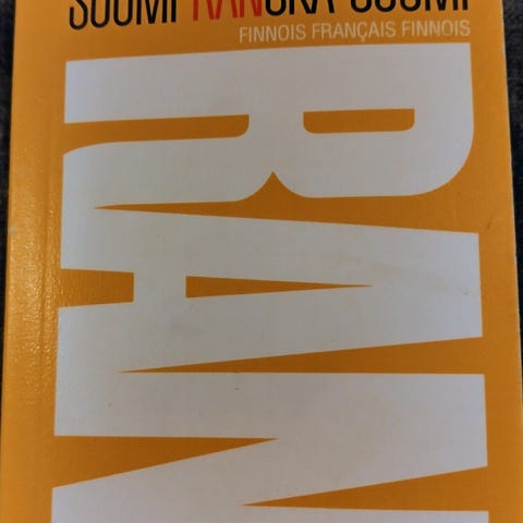 Ranskanopiskelijoiden ”raamattu”, lähes 10cm paksu silkkipaperisivuinen sanakirja vuodelta 2010. Omistuskirjoitus alkusivuilla peitetty. Ei käytetty, kuin uusi. Sanakirjat eivät niin vanhene. 🙂