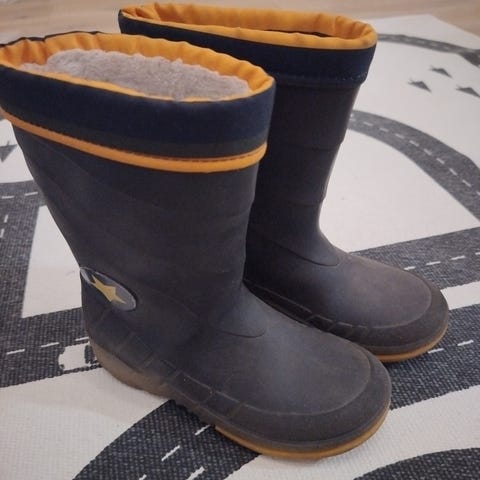 Kahdet kengät alkutalveen ja pikkupakkasiin. Kumisaappaissa lämmin karva sisällä, käytetty kunto, ehjät. Loskarit siisti käytetty kunto, ehjät. Molemmissa karva painunut, menee vielä hyvin leikeissä.