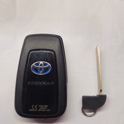 Neljä samanlaista avainta. Toyota Corolla. Autoa ei ole enää olemassa.