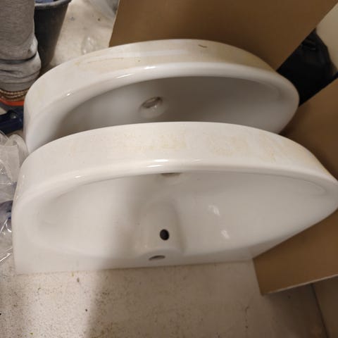 Pesualtaan osia, peitelaippa ja läpivientitiiviste