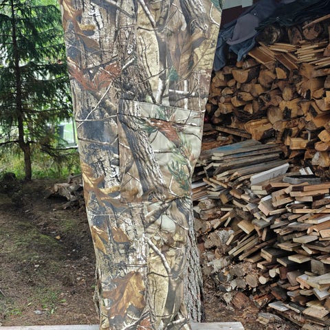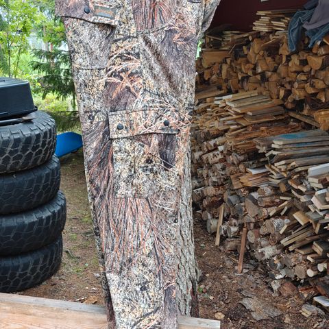 Redhead metsästyshousut, joissa on camo-kuvioitu fleece-kangas. Housut on suunniteltu tarjoamaan lämmikettä ja peittävyyttä metsästykseen tai ulkoiluun. Niissä on napilliset taskut ja säädettävät yksityiskohdat vyötäröllä ja lahkeissa.