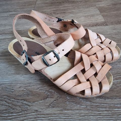 Moheda puukengät koossa 36. Siistit ruskeat kengät, mutta itselle tarpeettomat.