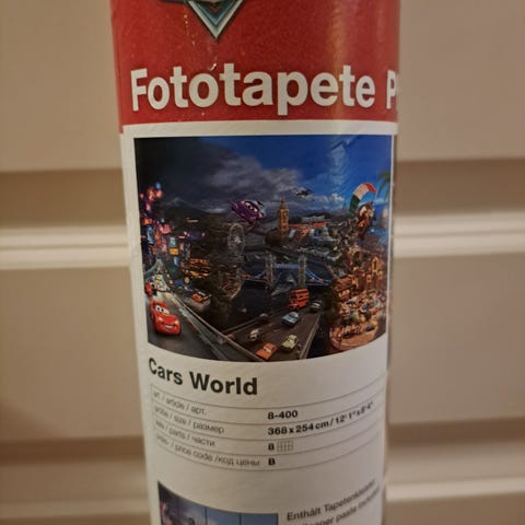 Lastenhuoneen tapetti. Cars valokuvatapetti tai seinä muraali lastenhuoneeseen. Uusi ja avaamaton tapetti rulla. Koko 368x254