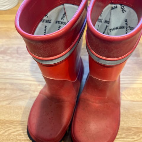 Myydään lasten vaaleanpunaiset kumisaappaat koossa 24. Sisämitta n. 15.5cm.