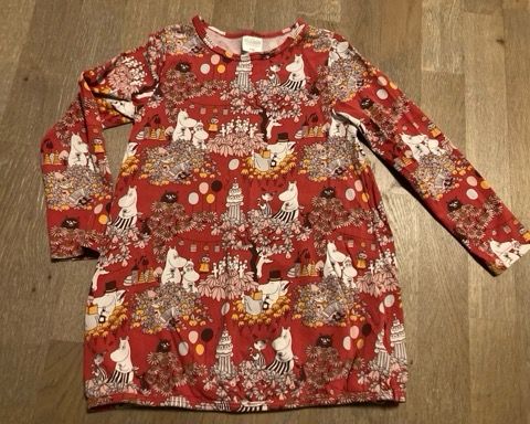 Upea muumin juhlamekko 110cm. Hyvä käytetty kunto, muutamat juhlat juhlittu.
