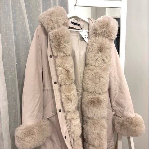 By Pias myymälästä ostettu talvitakki. Päällikangas upea kimalle hopea, sisältä sileä ja kauluksessa ja takin liepeissä samettimaista pehmeää kangasta. Hihansuissa resorit. Kaksi taskua edessä vetoketjulla ja povitasku vetoketjulla. Upea takki talveen! Kunto hyvä, ehjä tahraton! Myyntiin koska koko ei enää sopiva itselle.