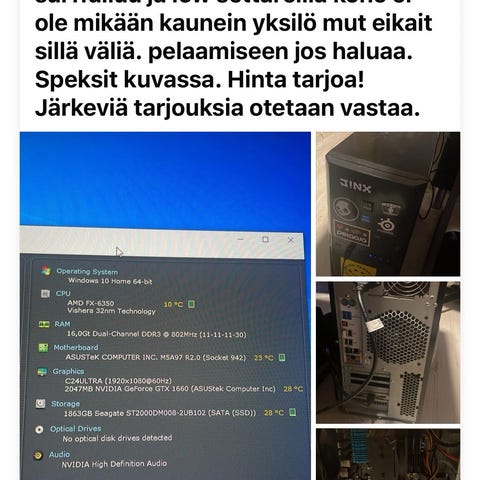 Hyvässä kunnossa. SSD uusi laitettu. Hiiri ja näppäimistö on. Koko tietoa on kuvassa. Jukolassa. Te tarjous.