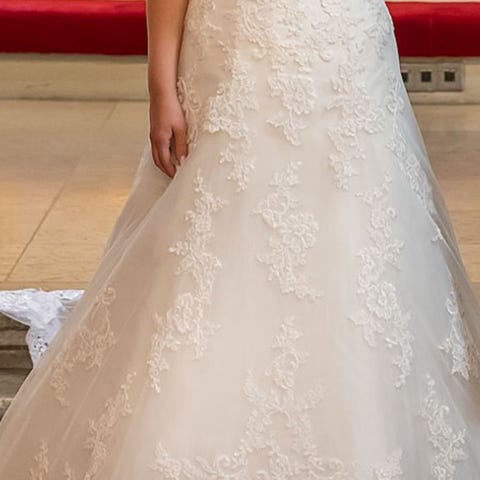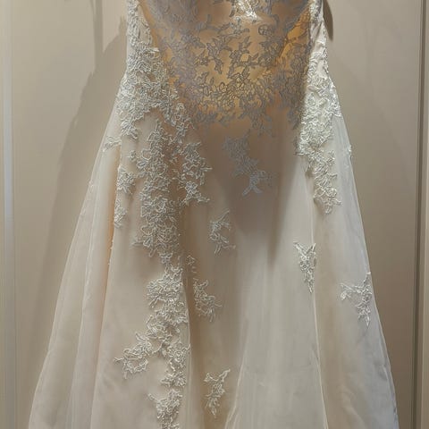 Zazabella Dazzling hääpuku, koko 42. Tämä valkoinen puku on valmistettu laadukkaista materiaaleista ja sisältää kauniita pitsiyksityiskohtia. Puku on pesty, mutta pesusta huolimatta helmassa saattaa jotain pientä tahraa löytyä. Muuten puku on oikein siisti. Puvun lisäksi mukaan saa vannehameen. Puku lyhennetty sopimaan 163cm pitkälle. Itsellä oli tennarit jalassa.