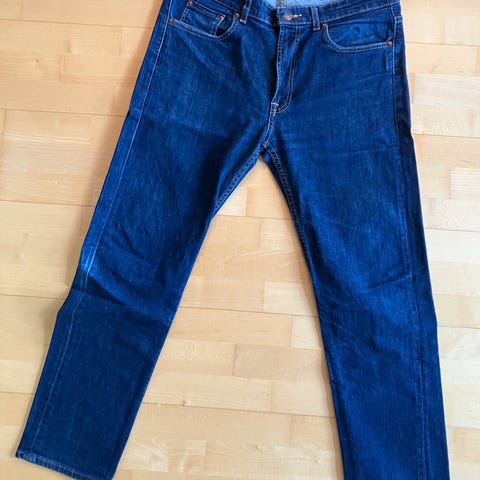Siniset farkut W36 L34. Sisäsauma: n. 79 cm. Lahkeet vähän revityt. 100% puuvillaa.