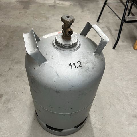 Noin puoliksi täynnä oleva teräksinen kaasupullo.