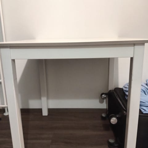 Myyntiin runsaalla käytöllä ollut ruokapöytä.