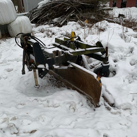 Traktorin takalevy leveys n 2 m., myös muita pienen traktorin työkoneita.