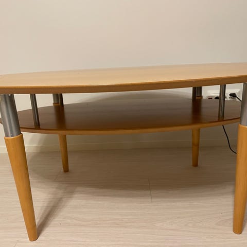Kiiltäväpintainen hyväkuntoinen ja tukeva sohvapöytä. Kaksi tasoa.