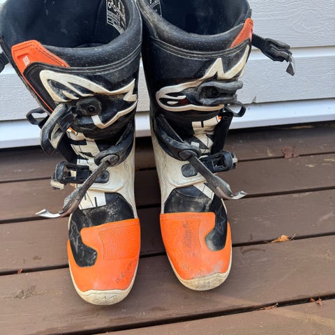 Myydän tyylikkäät vain muutaman kerran asvaltilla ajossa olleet Alpinestars tech6 motocross saappat koko us8 eu42