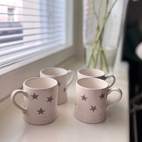 Bastion Collectionin suuret kahvi- /teemukit etsii uutta kotia. Tähtikuvioinen kahvikuppisetti on valmistettu kestävästä posliinista, värinä valko-harmaa.