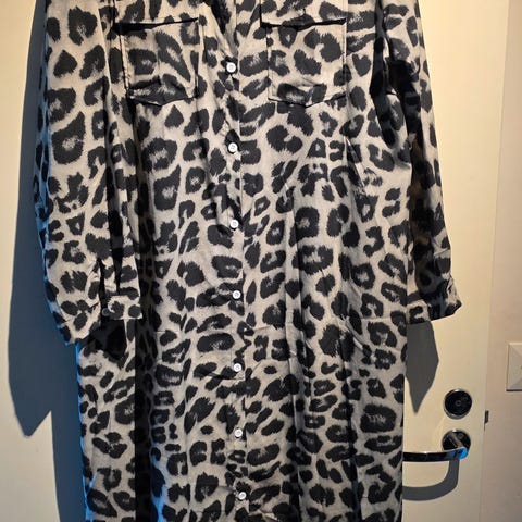 Käyttämätön pitkähihainen mekko. Kainalo-kainalo 63 cm ja olka-helma 135 cm. Kiinteä koristenapitus edessä.