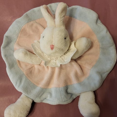 Käyttämätön Ainun ensipupu uniriepu. Nyt en muista tuliko tätä edes käyttöönottopestyä vai ei. Meillä oli liikaa uniriepuja eikä vauvaa kiinnostanut yksikään niistä 😅