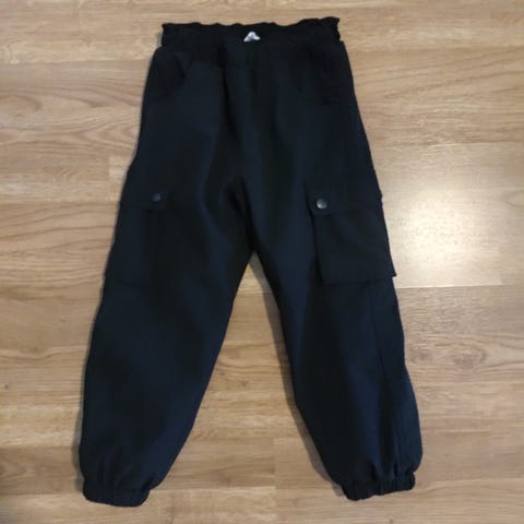Myydään Remun mustat kevyttoppahousut koossa 104. Molemmissa polvissa ja takapuolen kohdalla on nyppyä runsaasti, mistä johtuen kunto kohtalainen. Nypystä erillinen kuva.