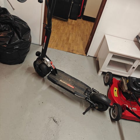 Puuttuu moottori akku ja virtalukko etu kumi ehkä puhki tai sitten tyhjä.