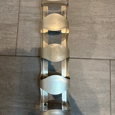 Myydään uusi, kuvanmukainen pulloteline esim. viinipullolloille, mehupulloille tms, jäänyt käyttämättä.