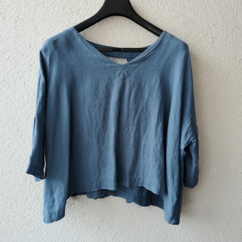Siistikuntoinen Italialainen kirkkaansininen pellavapusero, one size kokoinen.