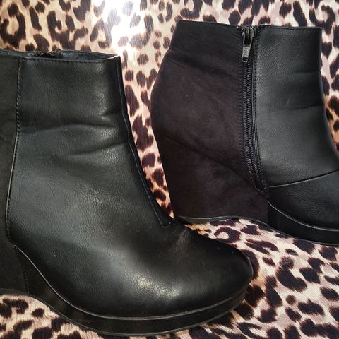 Myydään kerran käytetyt mustat kiilakorkokengät, kokoa 39. Merkki Anna Field.