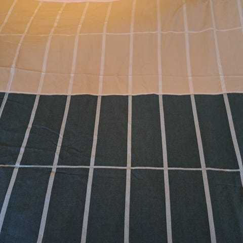 Käytetty, jotain pehmentymää tms voi olla uuteen verraten. Upeat skandinaviset värit tässä. Ei kutistu enää. Kuvassa silittämättä. Puuvillaa. Pinta hieman meleeratun oloinen. Pöytäliinamateriaalua, kauniit kulmaompeleet. Mmm