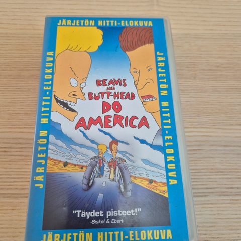 Beavis and Butt-Head Do America VHS-elokuva. Klassinen animaatioelokuva, joka seuraa Beavis ja Butt-Head -hahmojen seikkailuja Yhdysvalloissa. VHS-formaatti tarjoaa nostalgisen katselukokemuksen.
