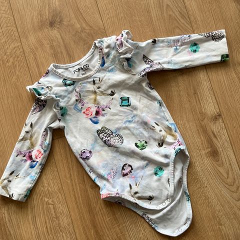 H&M bodyt koossa 80. Toinen valkoinen jossa koiran kuvia ja toinen beigen sävyssä. Siistissä kunnossa. Taloudessa ei lemmikkejä. Pesty hajustamattomalla pyykinpesuaineella.