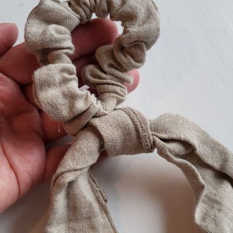 4 kappaletta käsin neulottuja, käyttämättömiä hiusdonitseja. Sisällä kuminauha.