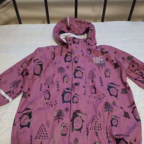 HC outwear merkkiset sadetakki ja sadehousut. Hyväkuntoiset, housujen toisessa polvessa pieni rokama (näkyy viimeisessä kuvassa). Takin helmassa sisäpuolella hiekkavärjäymää, joka ei irronnut pesussa. Vastaavat kokoa 116, voin mittailla tarvittaessa. Postitus ok, ei toridiiliä.