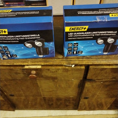 Ulkovalo liiketunnistimella.230V/50 Hz.Max.60w E27.Tunnistusalue:120`maz.12 m.Kytkentäaika 15 sek.-5 min.Suojausluokka:IP 33. Tälläisen saa kaiketi purkaa vain ammatti-ihminen.Lampun ja "virtalähteen" väli on reilut 3m.